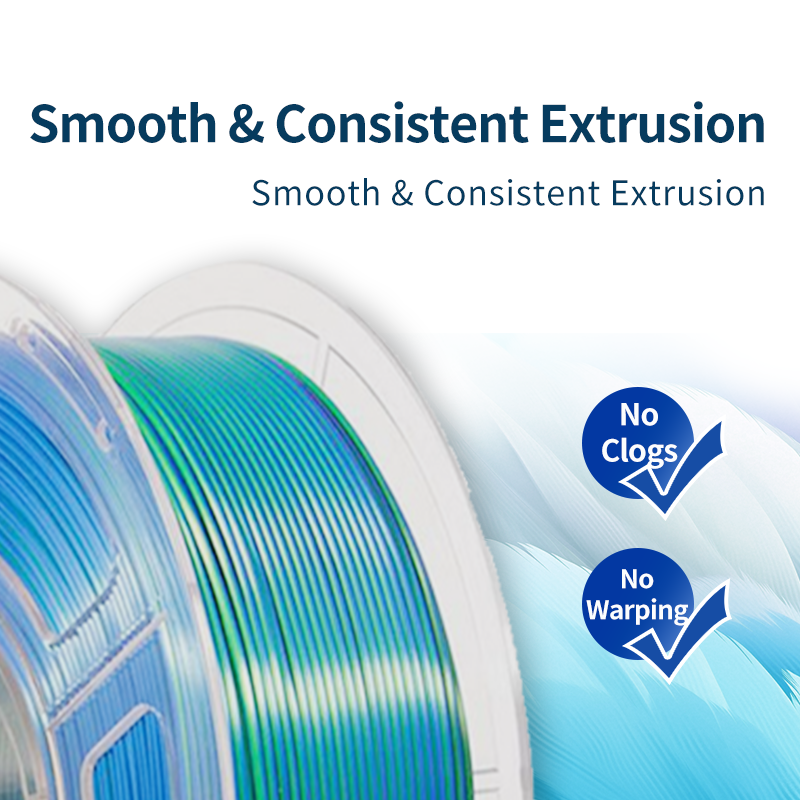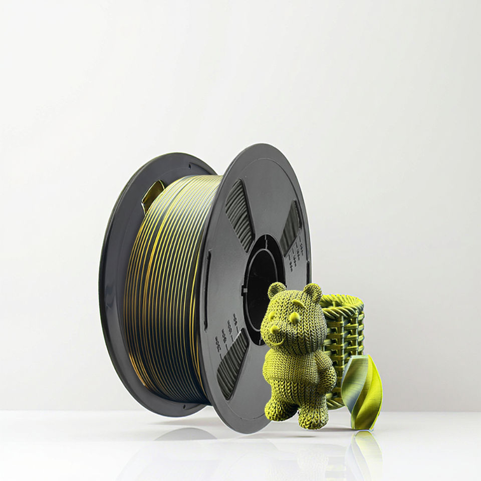 Fil PLA Soie Plus Bicolore Multicolore 1kg 100% Vierge 1.75mm Texturé Effet Soie Extrudé Bobiné Emballé Sous Vide Consommable