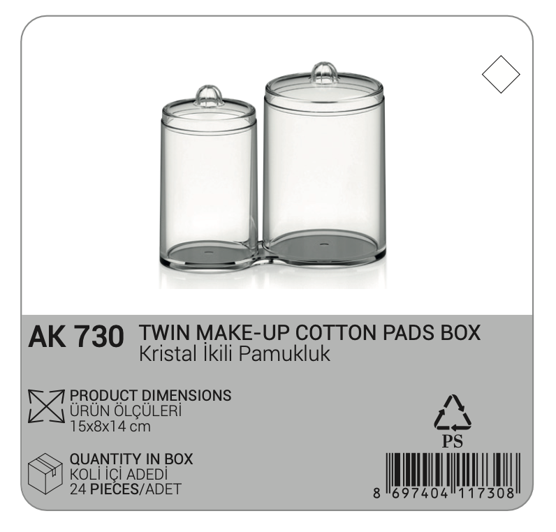 Utilisation:Clear twin cotton pad and swab organizer