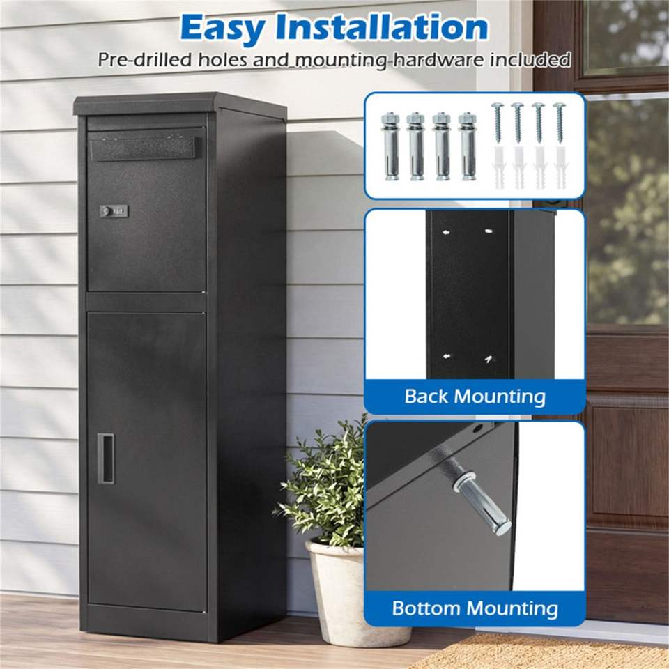 Boîte aux lettres en acier galvanisé à double compartiment avec serrure à code et à clé pour la livraison de colis à usage extérieur