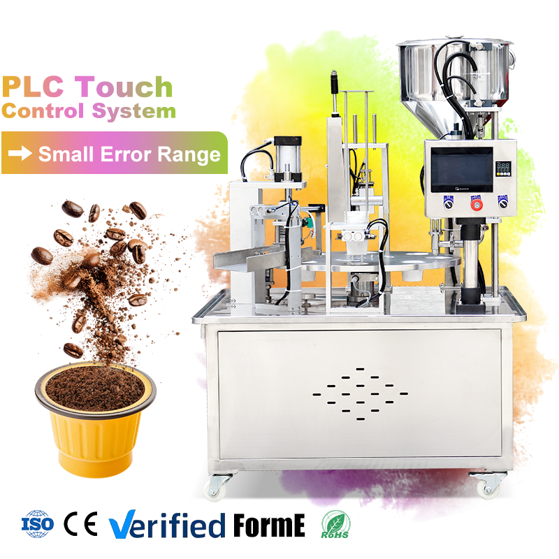 Remplisseuse rotative automatique double format pour capsules de café K-Cup et Nespresso, mesure de poudre haute précision, scellage hermétique en feuille d'aluminium
