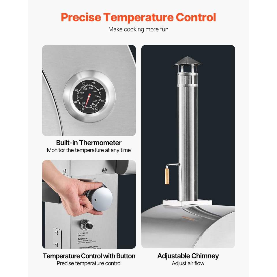 Four à pizza portable à double combustible 26 pouces, à granulés et à gaz, pour l'extérieur, avec roulettes faciles à déplacer, pierre à pizza en cordiérite épaissie pour le camping