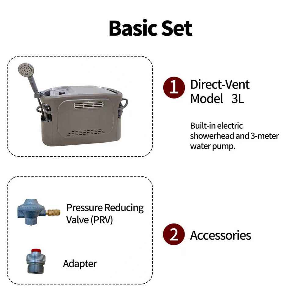 Chauffe-eau portable à double combustible (propane/GPL) pour camping, chauffe-eau instantané au gaz avec option 12V DC pour douche extérieure et eau chaude pour camping-car