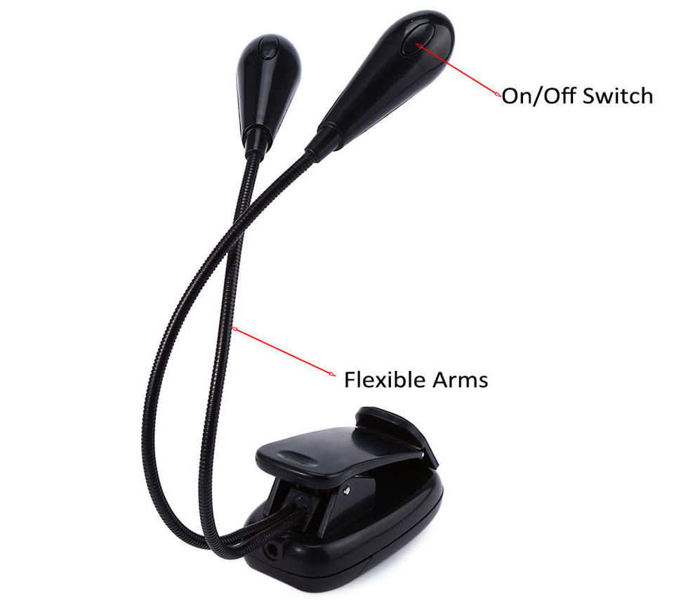 Lampe de lecture portable à double tête 8 LED, alimentée par piles, avec pince pour livre, lampe de bureau réglable pour chambre et bureau