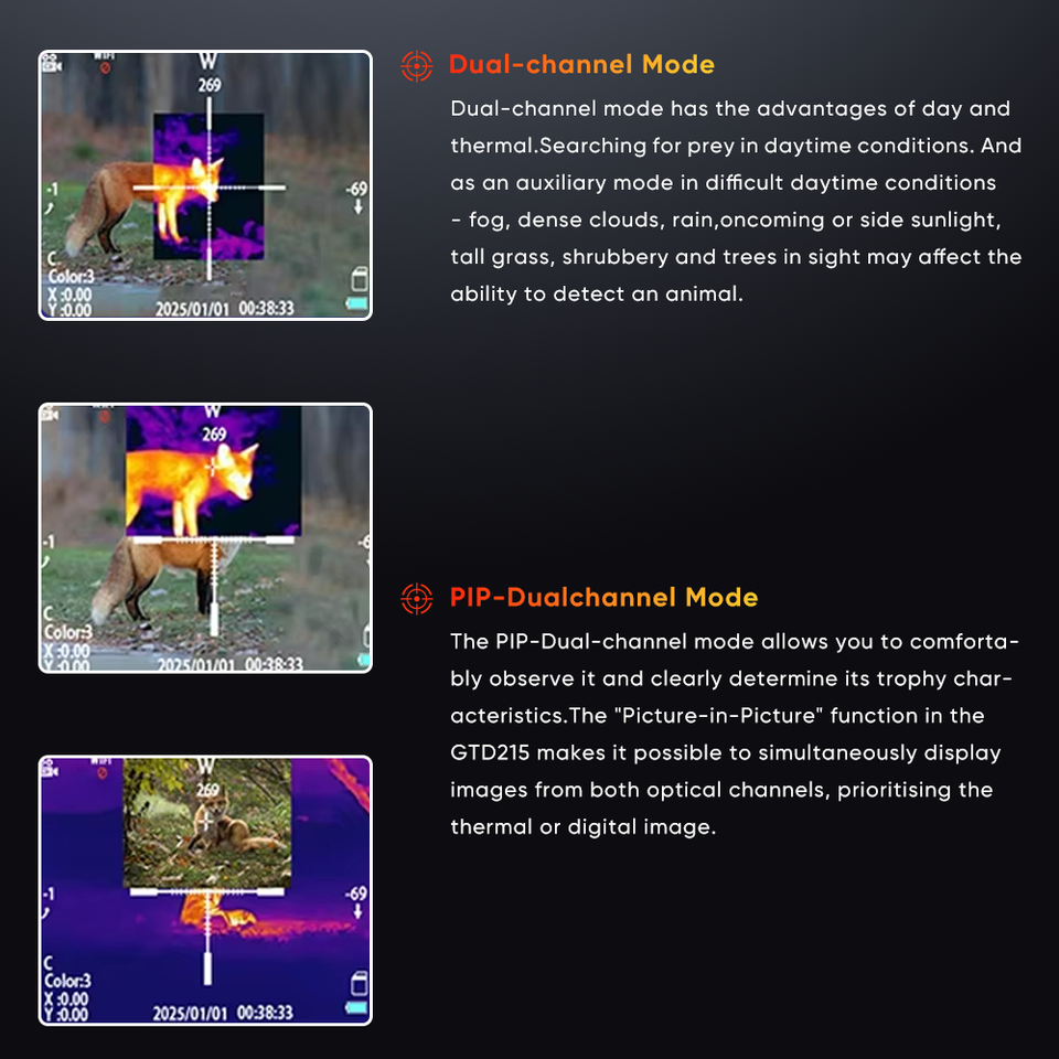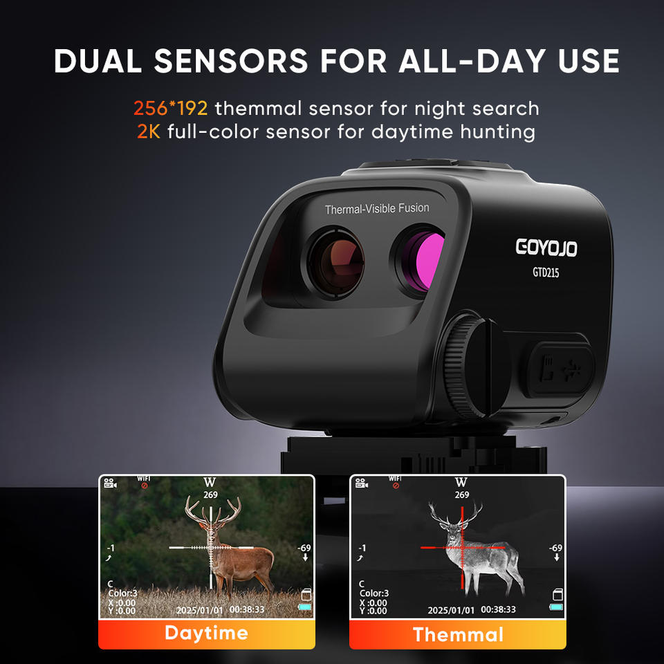 Monoculaire de vision nocturne thermique à fusion de deux lumières, écran HD de 2 pouces, imagerie multispectrale, plusieurs modes de vision nocturne