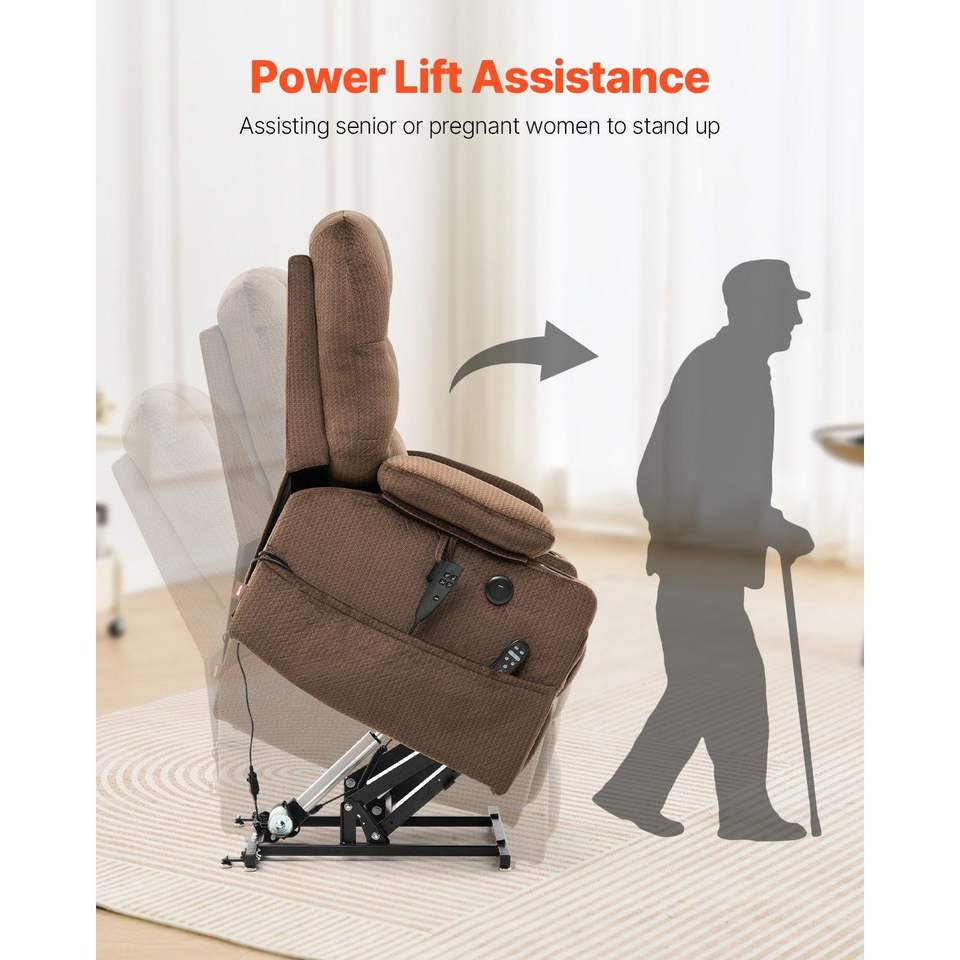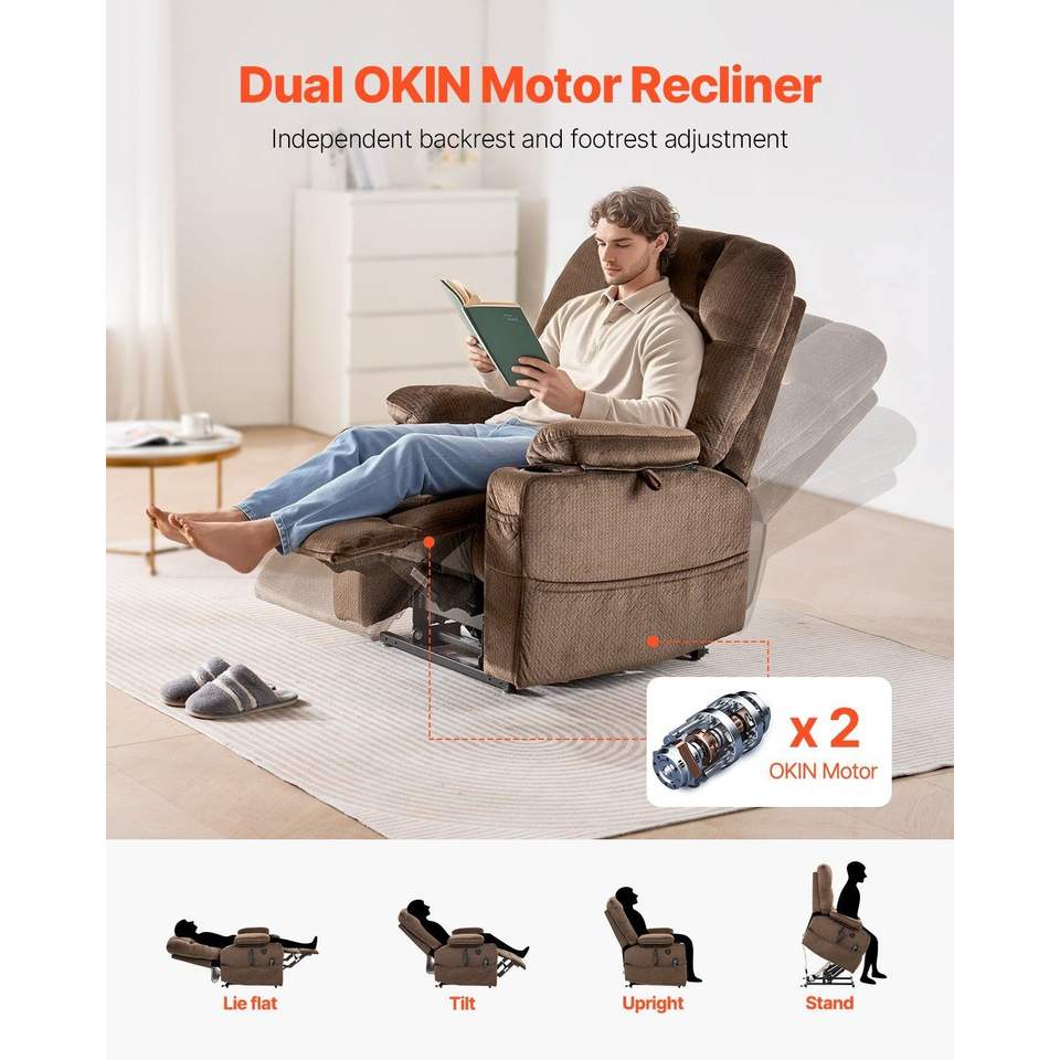 Fauteuil inclinable électrique à double moteur avec massage chauffant pour personnes âgées, 2 porte-gobelets et port USB
