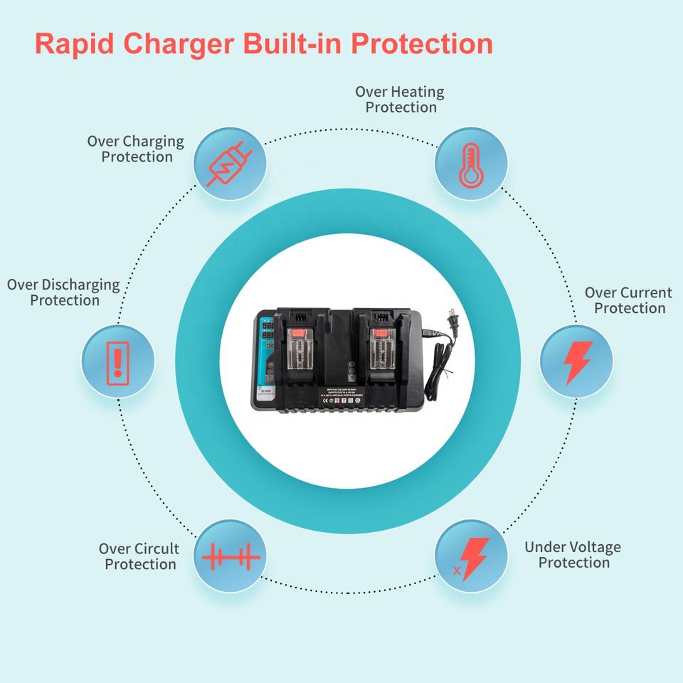 Chargeur de batterie double port ultra-rapide 9A*2 avec refroidissement, remplacement pour Mak Itas 14.4v 18v, kit combiné d'outils DC18RD, DC18RC