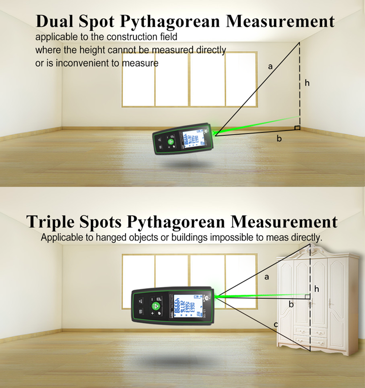 Distancemètre laser double puissance rechargeable et batterie 3A Outil numérique portable pour la construction et l'aménagement intérieur