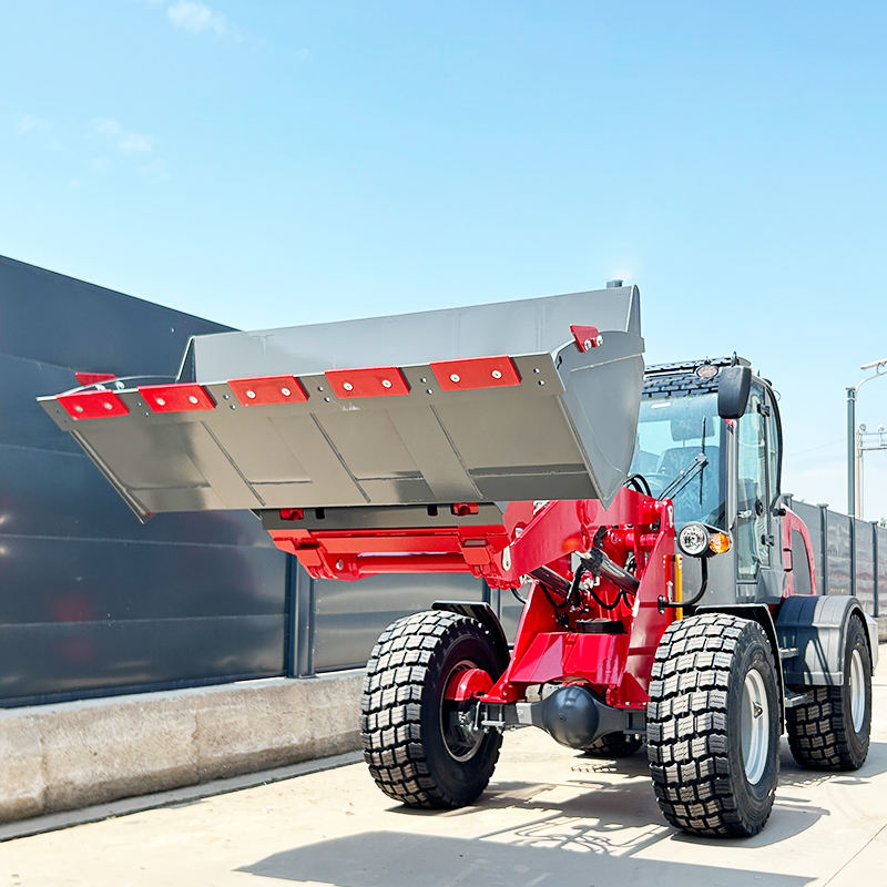 Mini-tracteur chargeur hydraulique diesel à double pompe 2T 4x4, moteur haute puissance, chargeuse sur roues, capacité de la benne 1-1,2 m, simultané