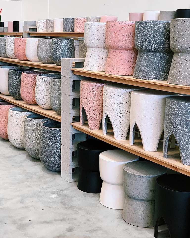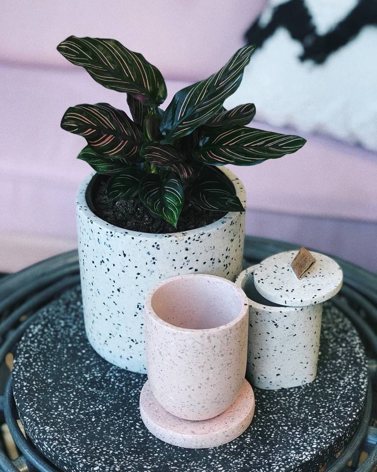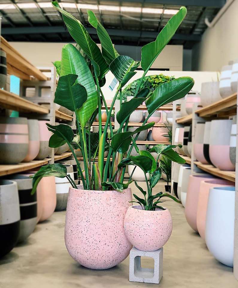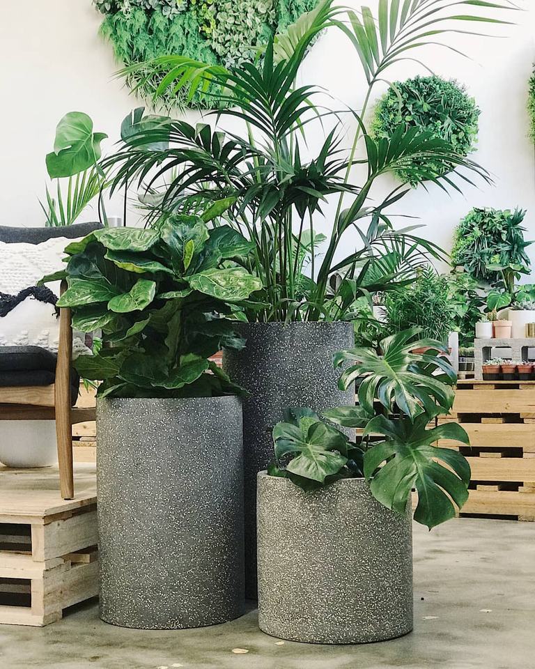 Deux tailles de pots en fibre de verre en poly terrazzo Léger Rond Intérieur/Extérieur Caractéristiques décoratives pour le jardin et la maison