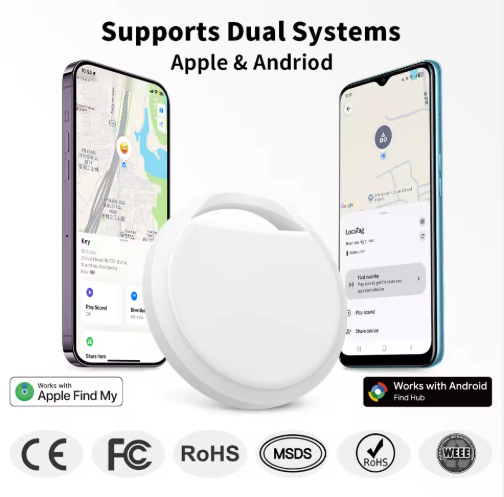 Dual System Smart Air Tag MFi Google Certified Mini Locator Key Finder GPS Tracker Built-in Buzzer Multi-user Sharing 1-Year