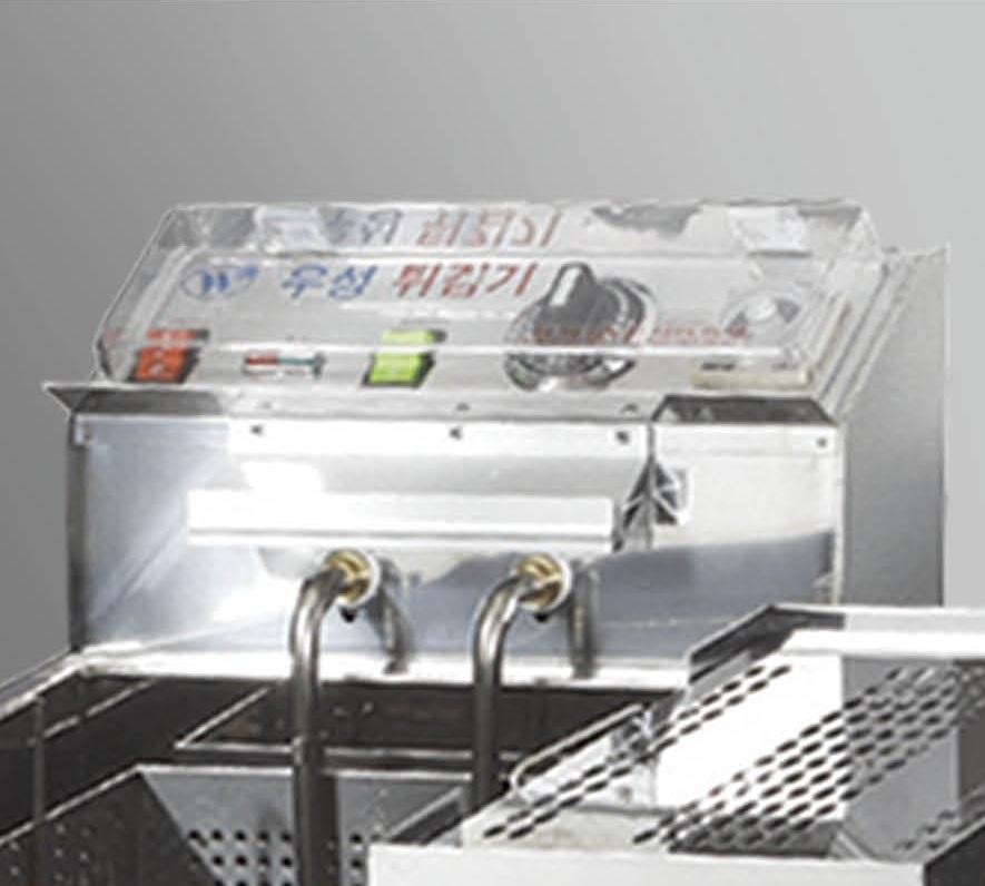 Friteuse électrique à double cuve, corps en acier thermolaqué, deux grandes cuves à huile, chauffage haute performance, contrôle analogique de la température et du temps.