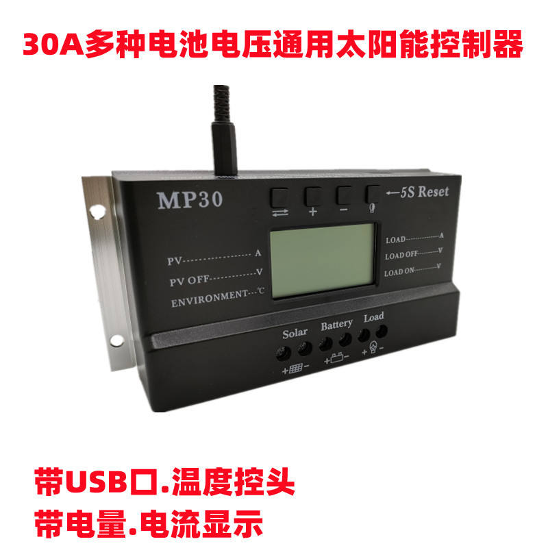 Contrôleur de charge solaire double USB auto 12V 24V lithium plomb acide avec affichage du courant PWM 30A Régulateur de panneau solaire