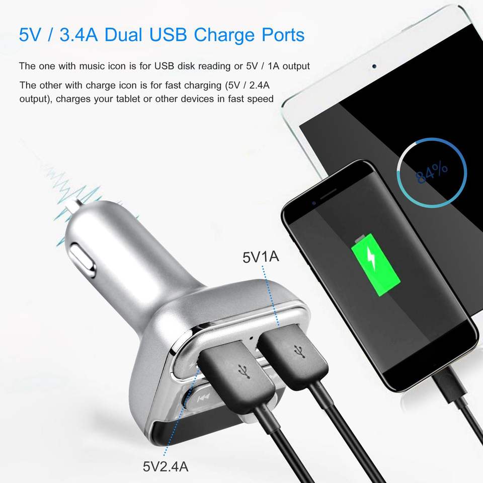 Transmetteur FM sans fil pour voiture avec double charge USB, appels mains libres et lecteur MP3 3.4A pour kit voiture Bluetooth