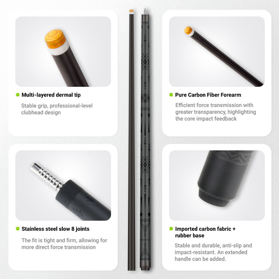 Queue de billard en fibre de carbone à double usage | Queue de billard/snooker d'intérieur avec fonction de saut et de rupture, construction en carbone de qualité professionnelle