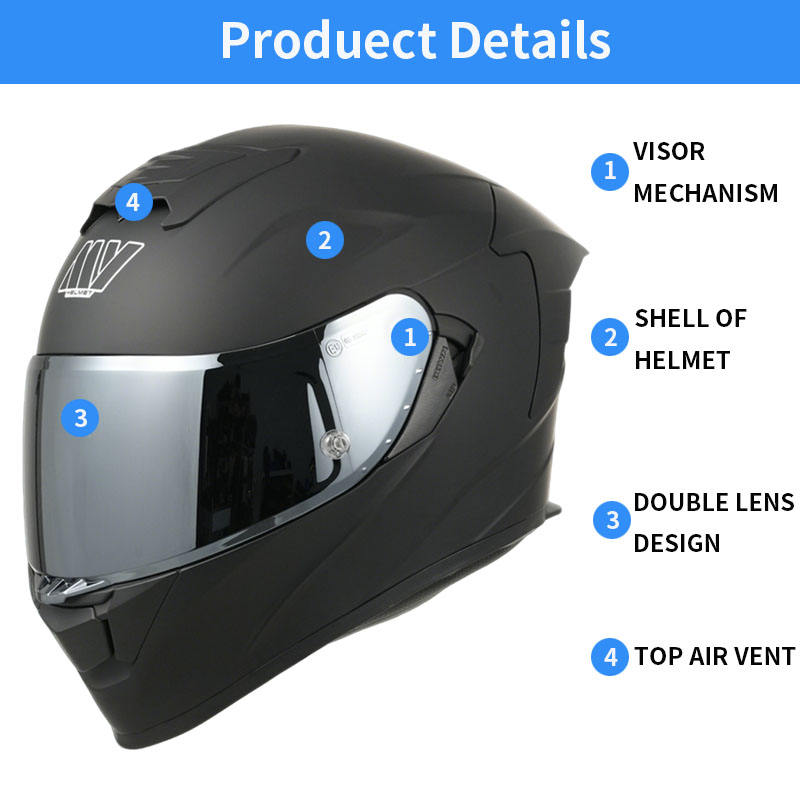 Casque de moto ABS à double visière, fermeture rapide, pare-soleil interne, vision large, certifié DOT pour le motocross.