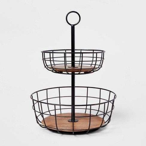 Corbeille à fruits en fer enroulé à deux compartiments avec des détails vintage traditionnels et une structure artisanale pour la décoration de table