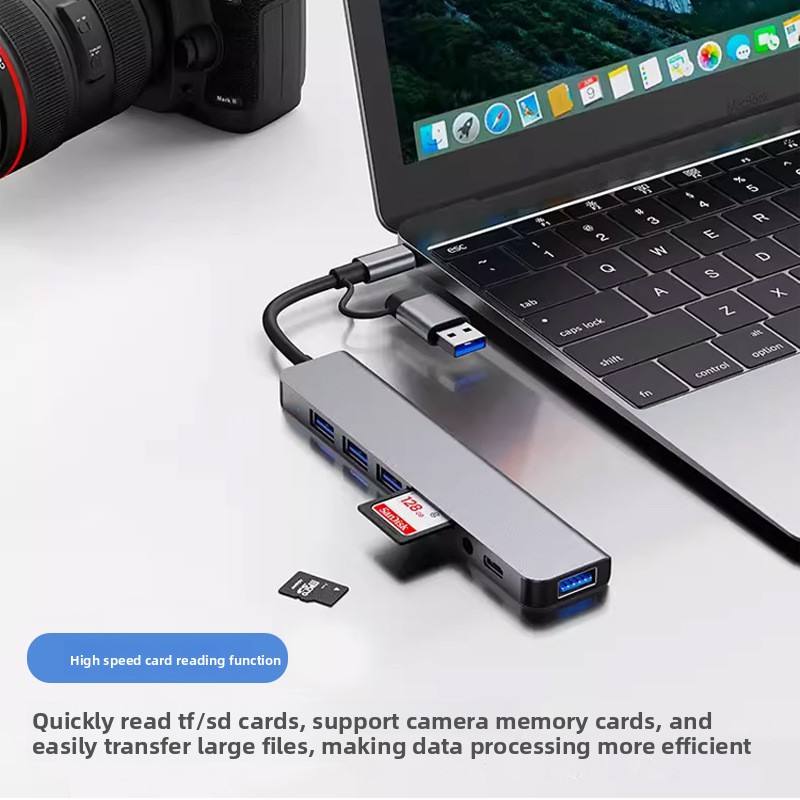Hub USB double tête 8-en-2 Type C avec lecteur de cartes TF/SD USB 3.0 et audio 3,5 mm pour ordinateur portable