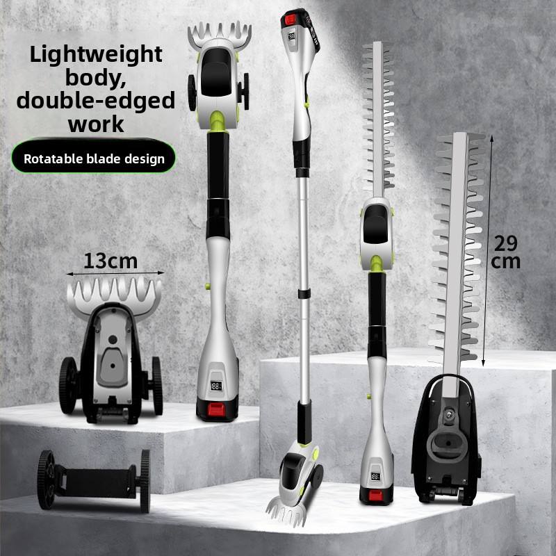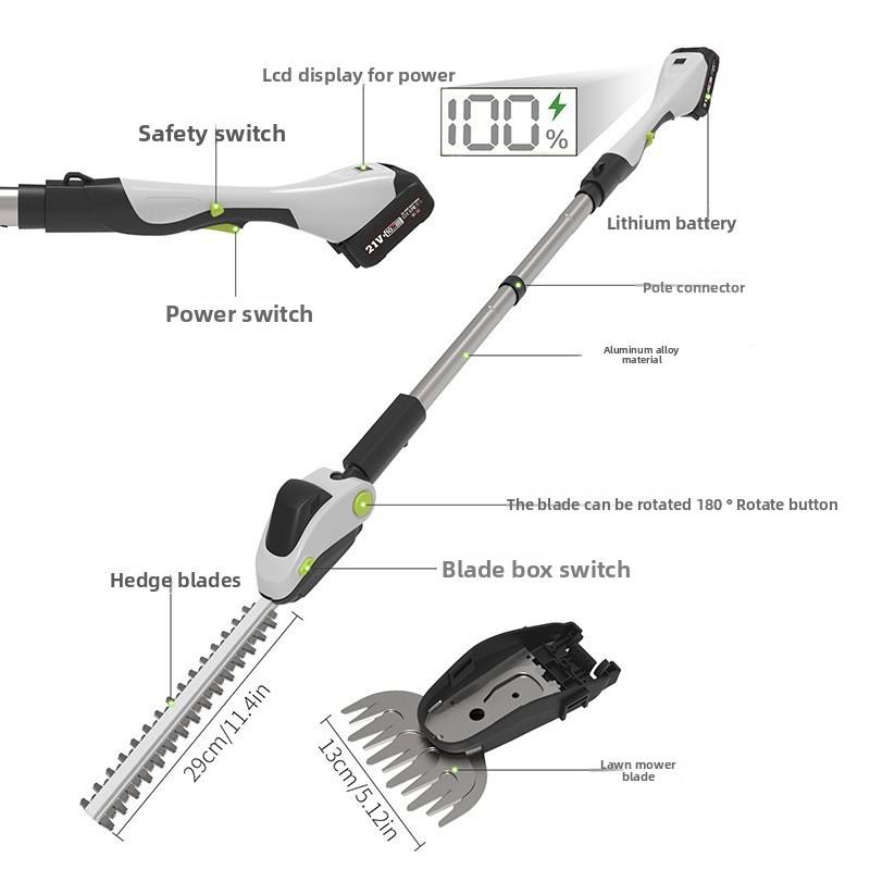 Taille-haie électrique double usage et cisaille à clôture portative avec lame de 29 cm, outil de jardinage rechargeable pour la coupe de l'herbe
