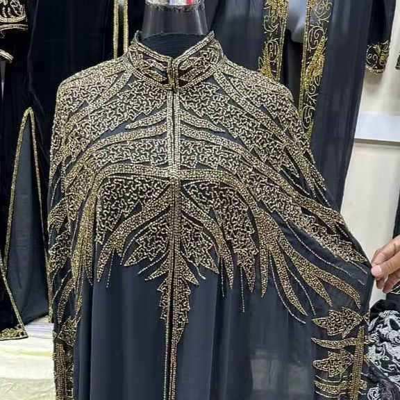 Dubai Moroccan Kaftan Arabic Abaya Maxi Hand Beaded Caftan Floor Length Party Wear Wedding Gown Beach Stylish Jellabiya