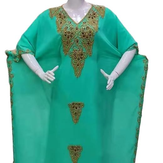 2024 Dubai Beautiful Moroccan Design Traditional Red Farasha Kaftan Dress with Hand-Stone Beads Work Muslim Caftan