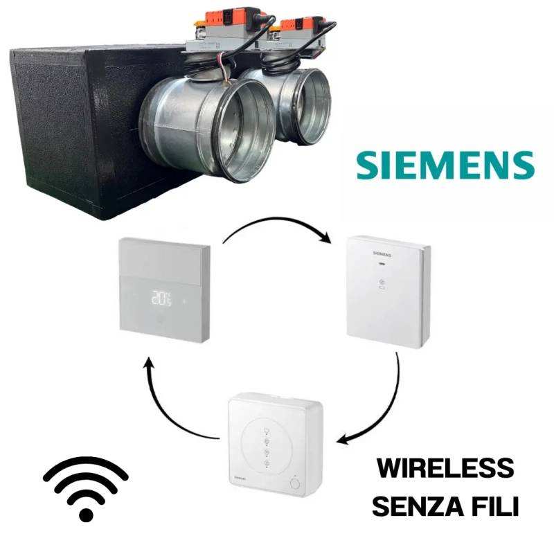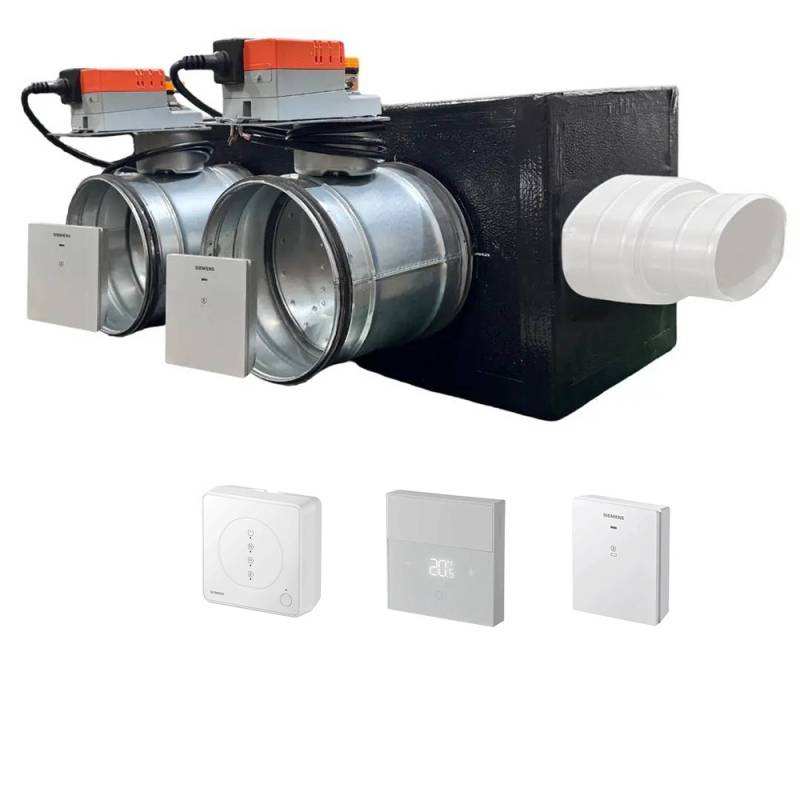 Unité de contrôle motorisée Wi-Fi 2 zones pour plénum à conduit avec interface Siemens flexible et connexion latérale VMC pour systèmes CVC