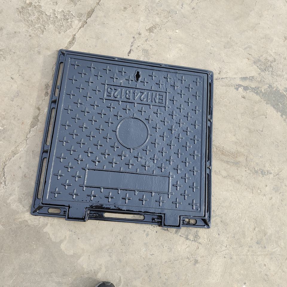 Couverture de regard carrée en fonte ductile à plateau surélevé pour les routes municipales, les égouts, les fosses septiques, les puits de sable, peinture bitumineuse noire