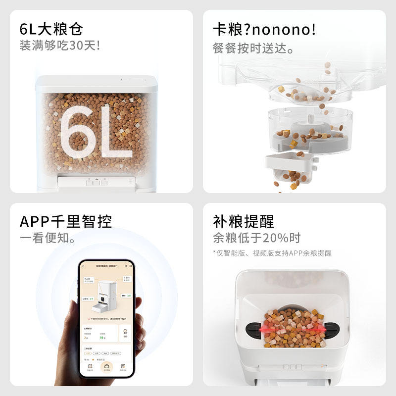 Distributeur automatique de nourriture pour animaux de compagnie Dudu Smart Pet Feeder 6L, contrôle par application, version visuelle, prise US, détachable