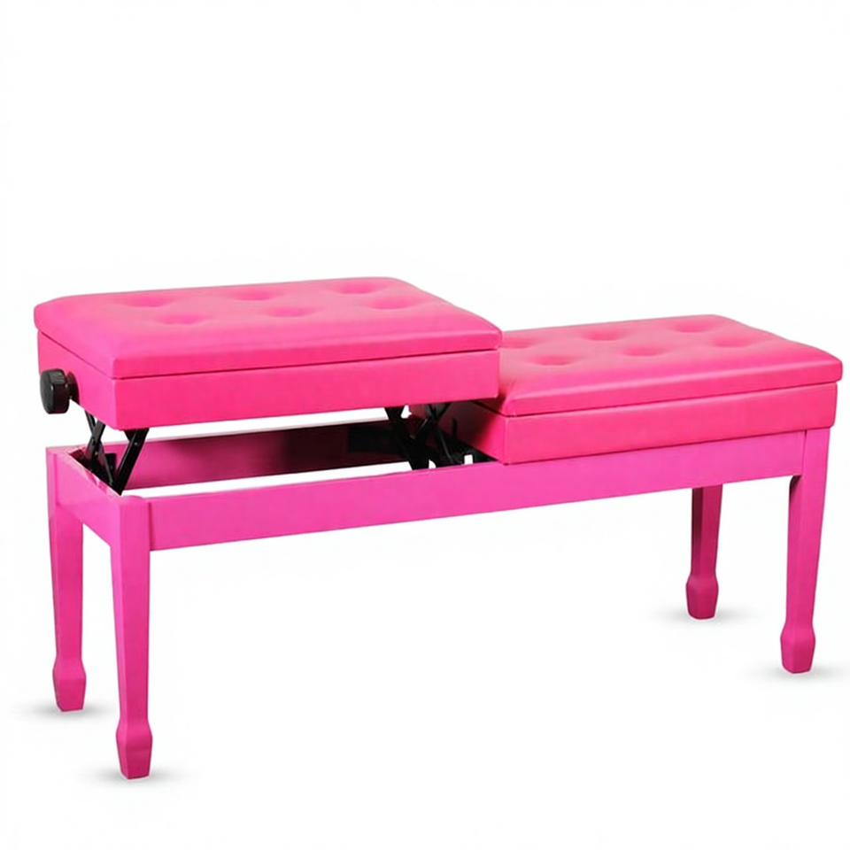 Duet 3.5 Inch Padded Wooden Piano Bench Heavy-Duty Double Keyboard Seat Storage Nonslip Cherry Finish Height Adjustable Model