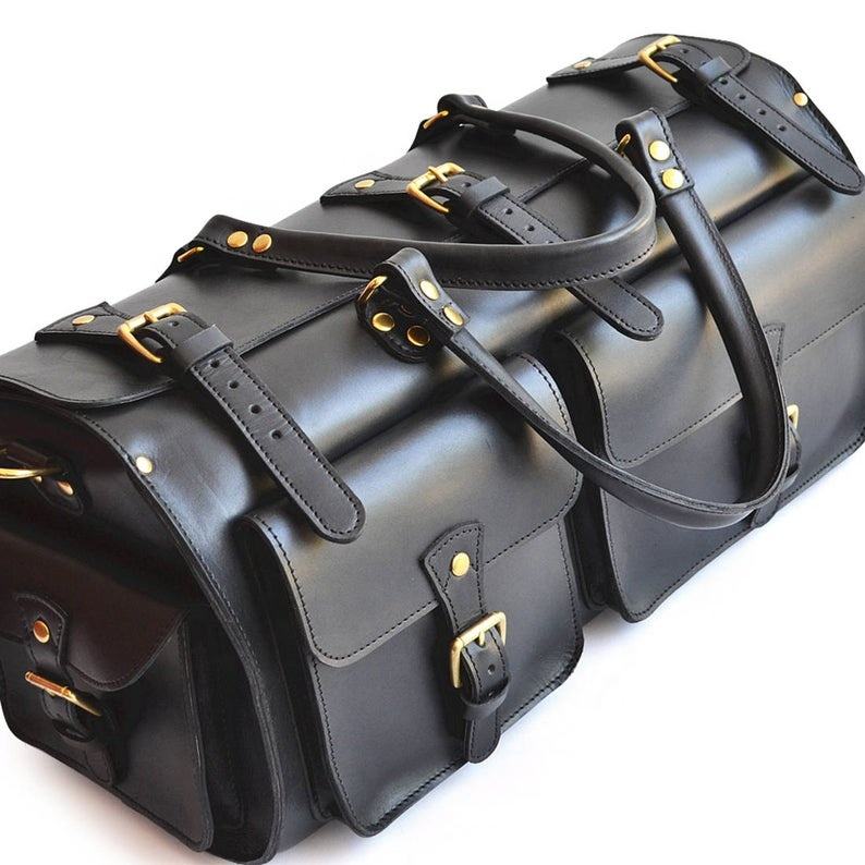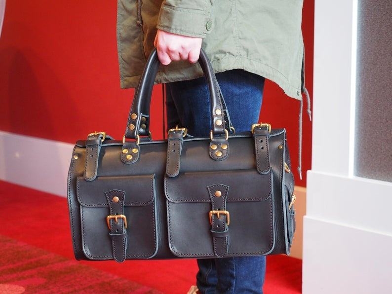 Sac polochon | Weekender En Cuir | Voyages en Noir et Marron | Femmes Porter yon Taille SLC-0018C