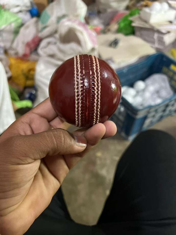 Ballon de cricket en cuir rouge avec logo personnalisé, cousu à la main, balle d'entraînement dure