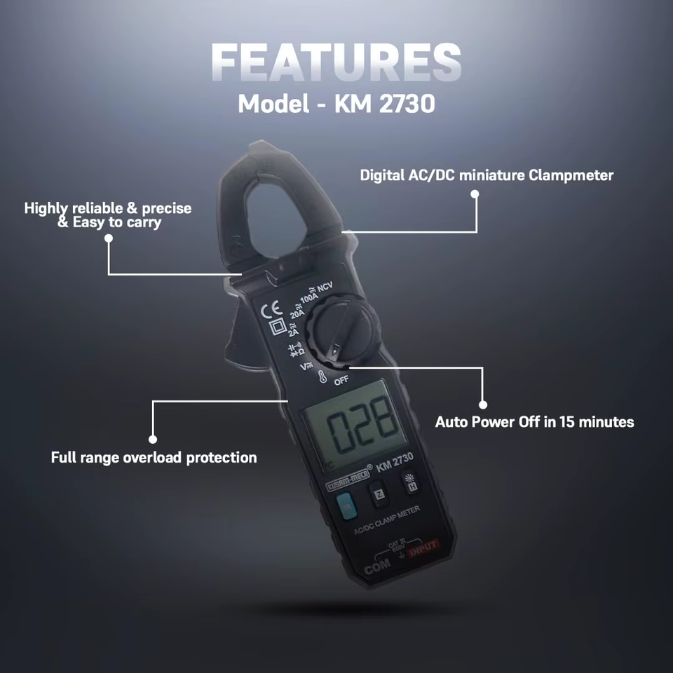 Pince ampèremétrique numérique durable 100A AC/DC True RMS pour une mesure précise du courant, modèle KM 2730