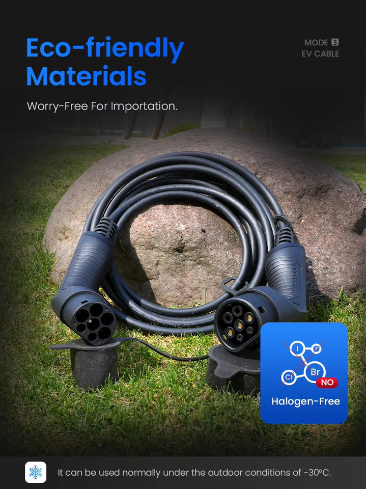Câble de charge EV durable 16A Type 2 3,6 kW monophasé 10 m avec prise autonettoyante, chargeur rapide pour véhicule électrique, norme UE