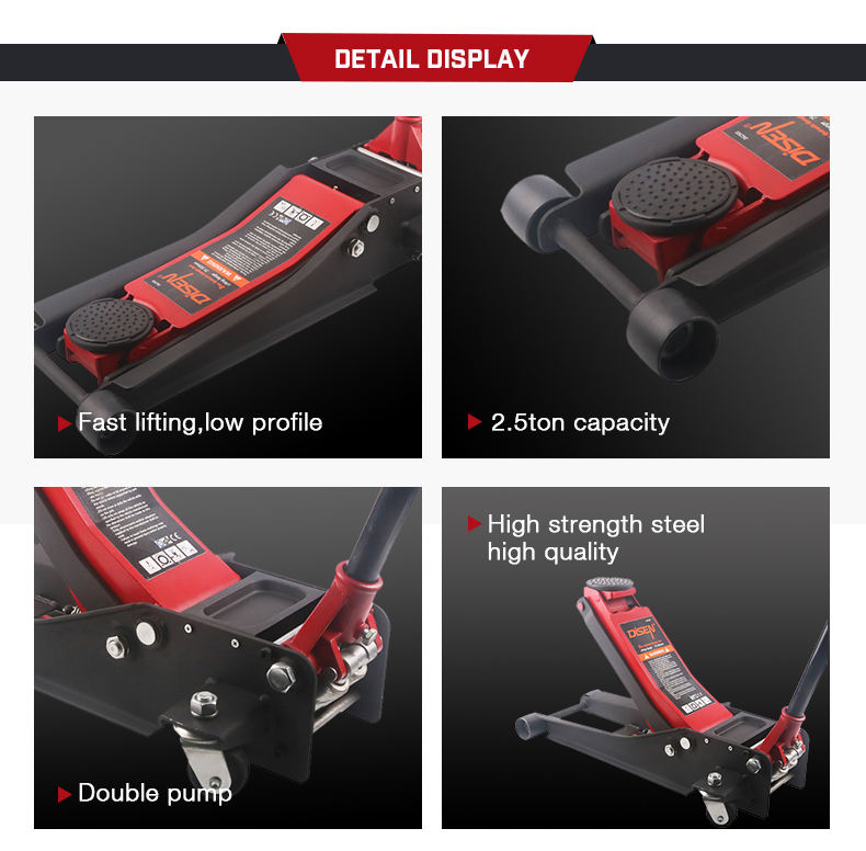 Vérin de sol hydraulique de voiture à double cylindre en aluminium durable de 2,5 tonnes pour les propriétaires de voitures avec option à double cylindre