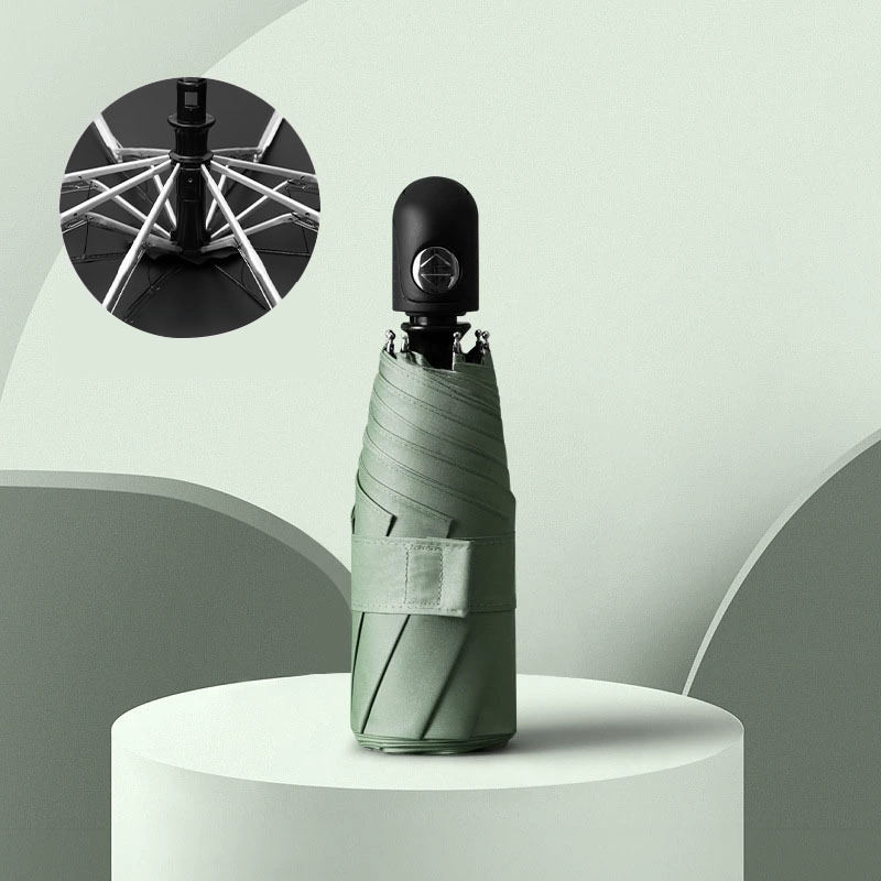 Parapluie pliable durable 5 volets, vert, mini, portable, SPF 50+, imperméable, impression personnalisée, double action automatique pour l'extérieur