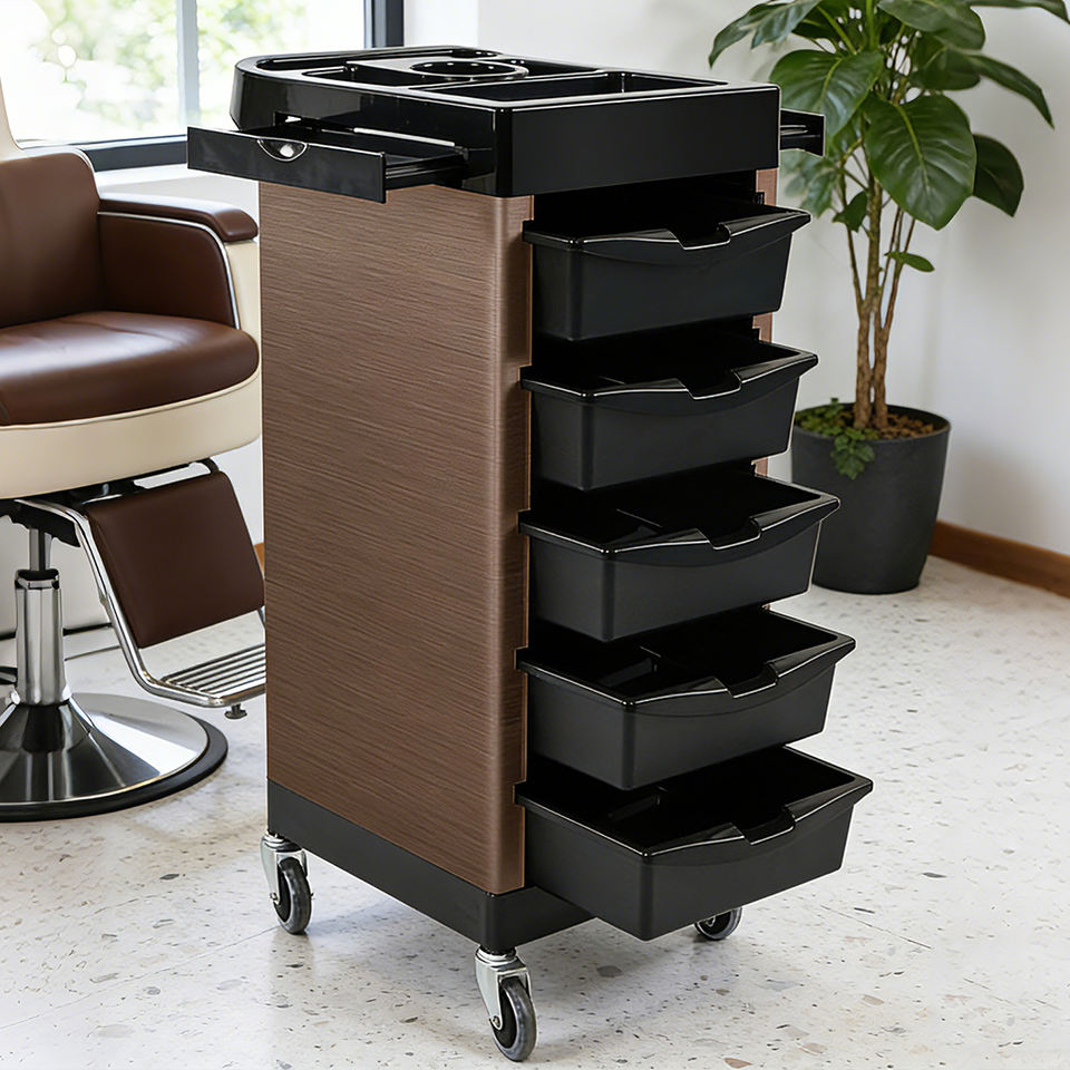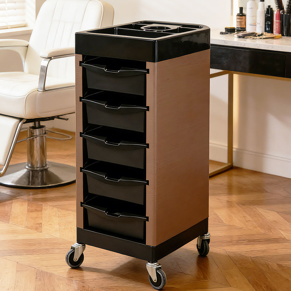 Chariot de rangement de salon durable à 5 niveaux, équipement de salon de coiffure en plastique, vente en gros d'usine