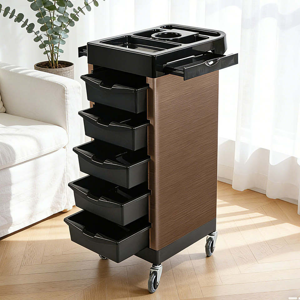 Chariot de rangement de salon à 5 niveaux durable en plastique, équipement de salon de coiffure, vente en gros d'usine