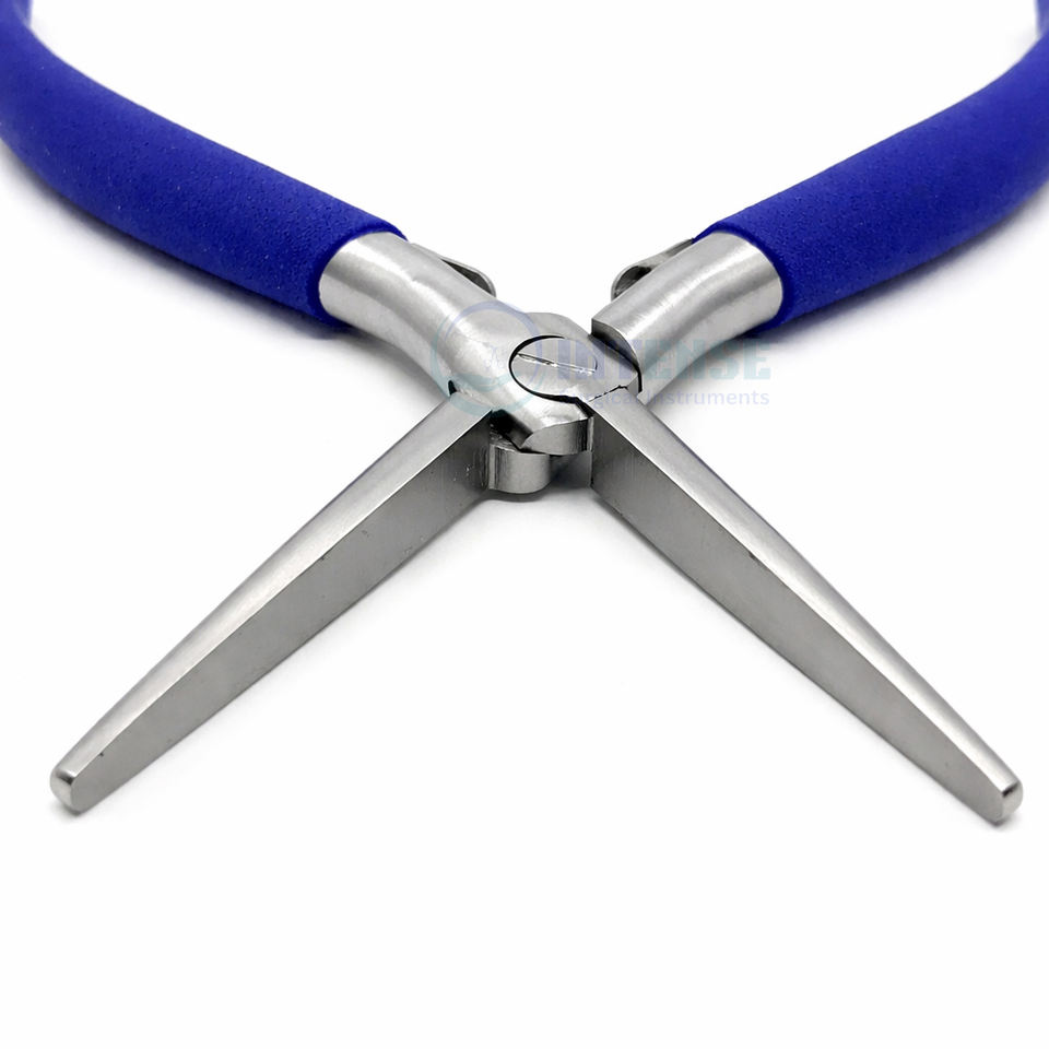 Pince à extensions capillaires en acier inoxydable durable et légère de 7 pouces avec embout plat, bec long et poignée bleue pour usage professionnel