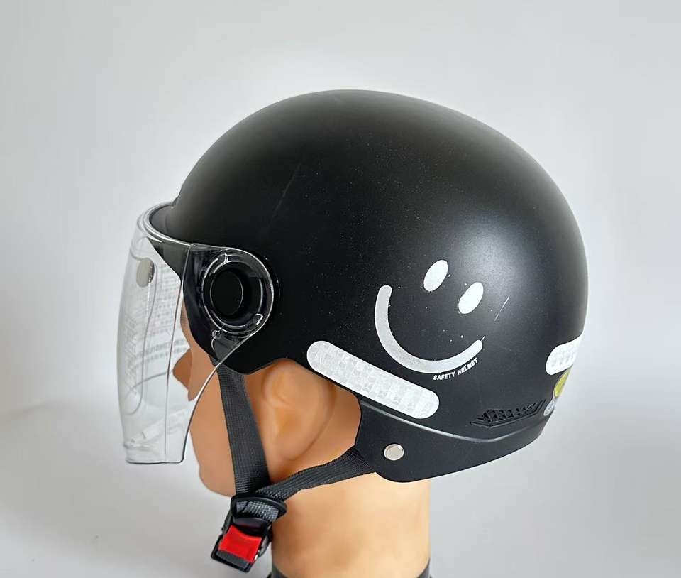 Casque de moto en ABS durable avec autocollant réfléchissant, visière transparente, boucle à dégagement rapide, sûr et confortable pour les trajets quotidiens