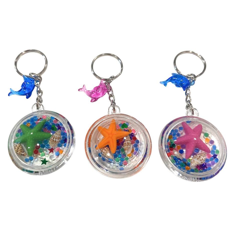 Description:Round acrylic keychain - Starfish float & sea shells inside