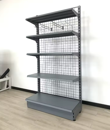 Étagères de présentation multifonctionnelles double face en acier allié durable pour supermarchés, capacité de stockage robuste de 1050 kg
