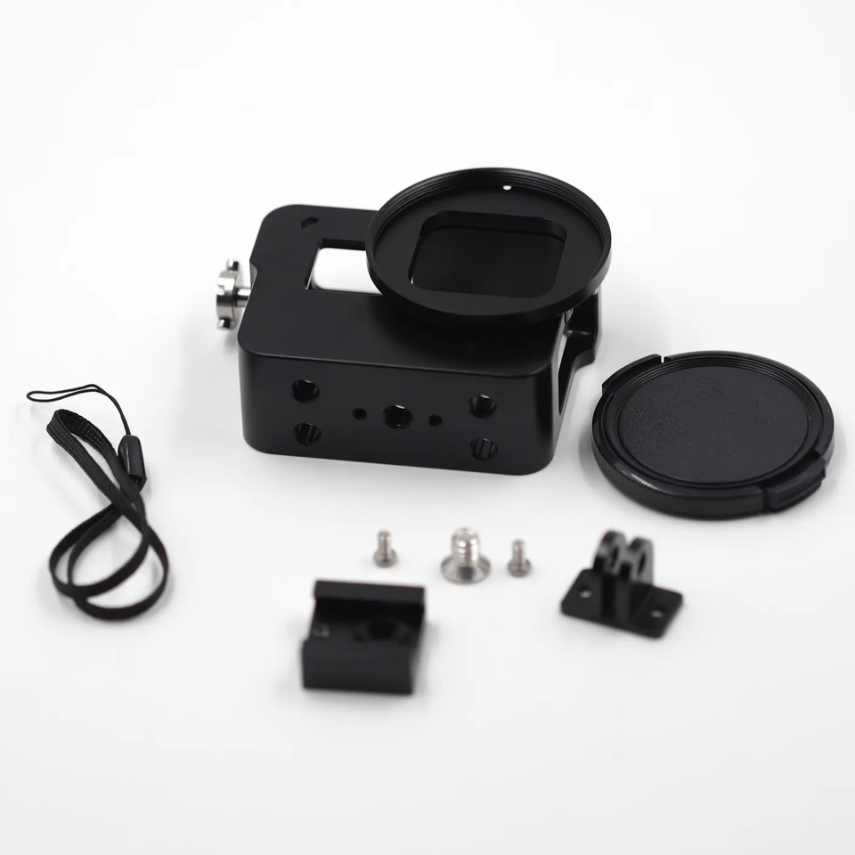 Boîtier de cadre en alliage d'aluminium durable Cage vidéo de protection Coque latérale ouverte avec filtre UV de 52mm pour Gopro Hero 7/6/5 Noir