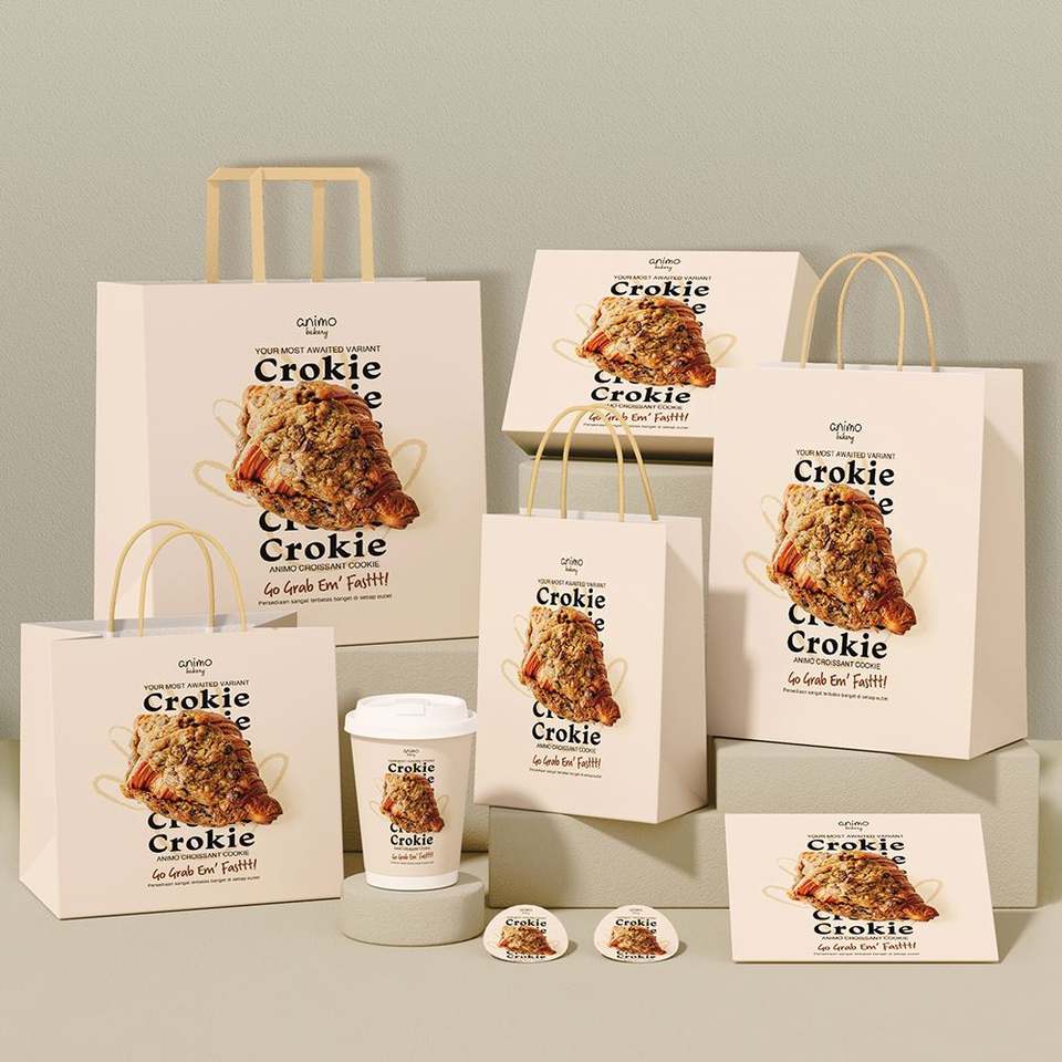 Sac en papier kraft brun durable avec poignée plate, style classique, pour emporter des produits de boulangerie ou de restauration rapide, sac en papier élégant