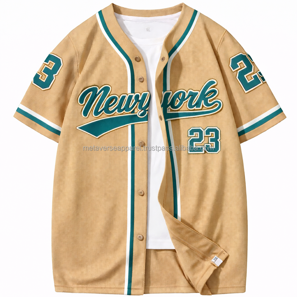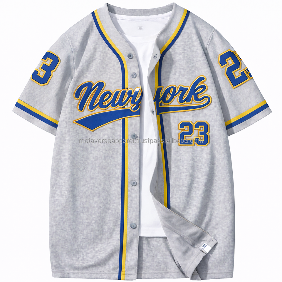 Maillot de baseball durable avec boutons, coutures plates, empiècements en maille ventilée, nom et numéro personnalisés, OEM