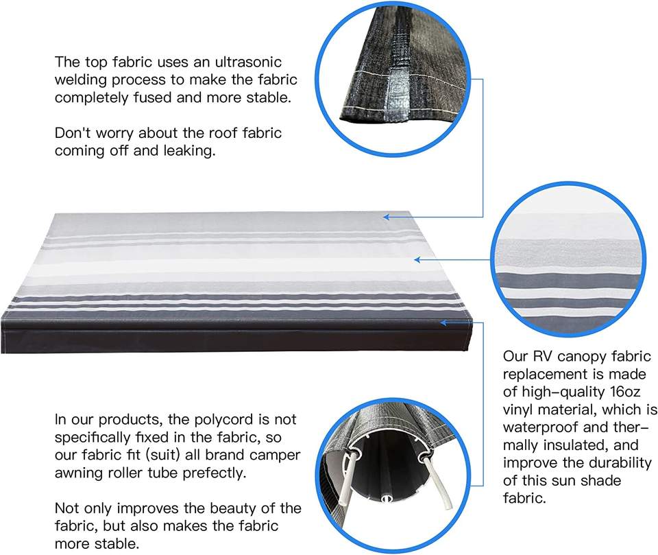 Résistance aux UV: Protège le tissu de l'auvent des dommages causés par le soleil, prolonge sa durée de vie et maintient son apparence au fil du temps.