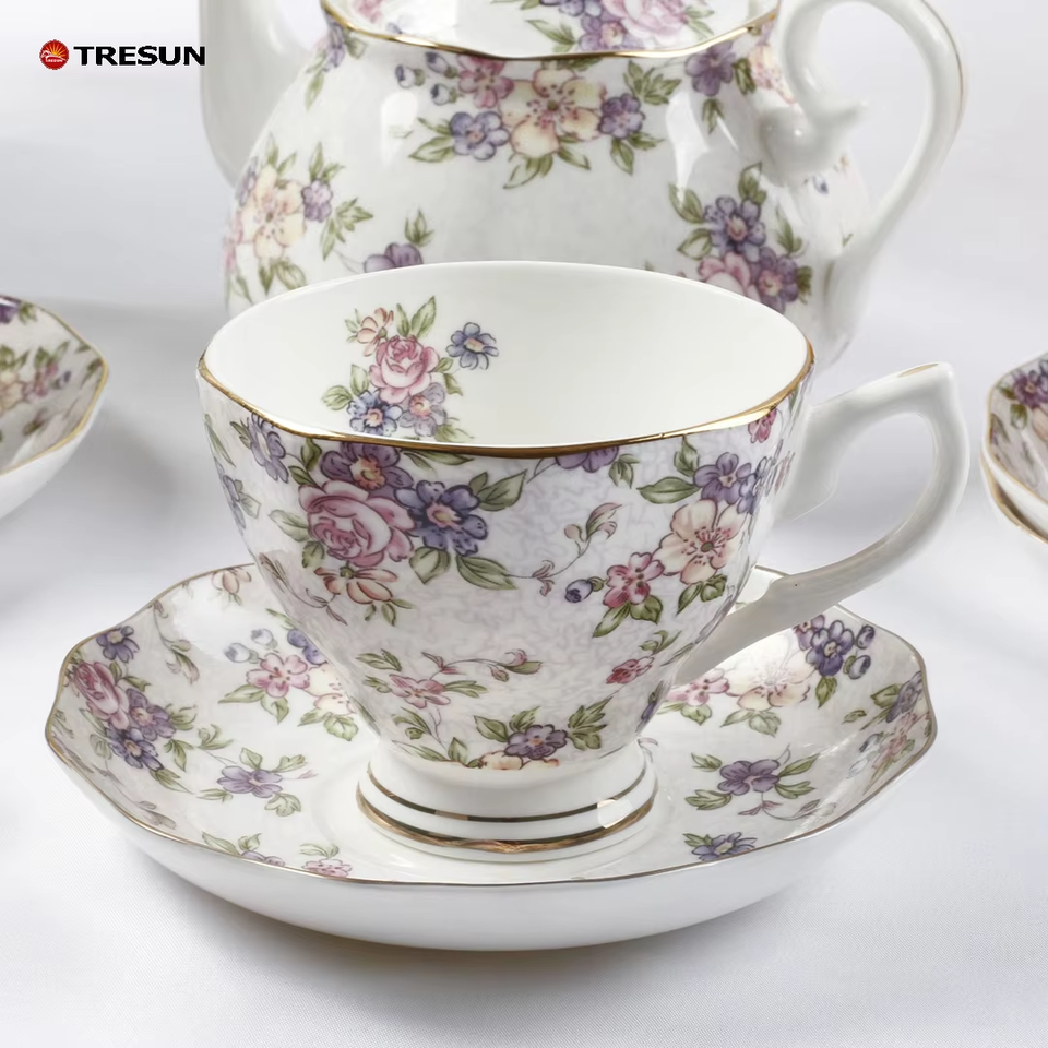 Vaisselle de luxe fabriquée en Corée de haute qualité en porcelaine fine Tasse et soucoupe Comet Platinum Décoré de platine peint à la main