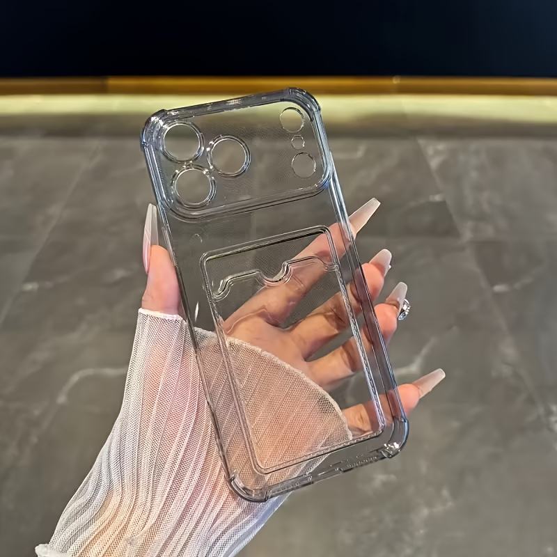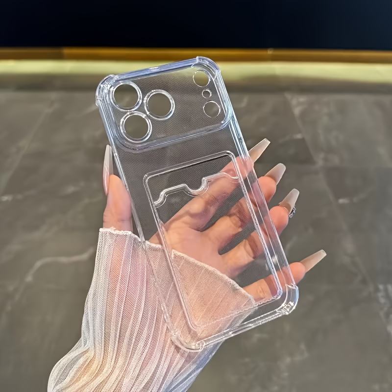 Coque de protection transparente en TPU durable avec fente pour cartes pour iPhone séries 17/16/15/14/13/12/11 – Housse arrière transparente anti-chute