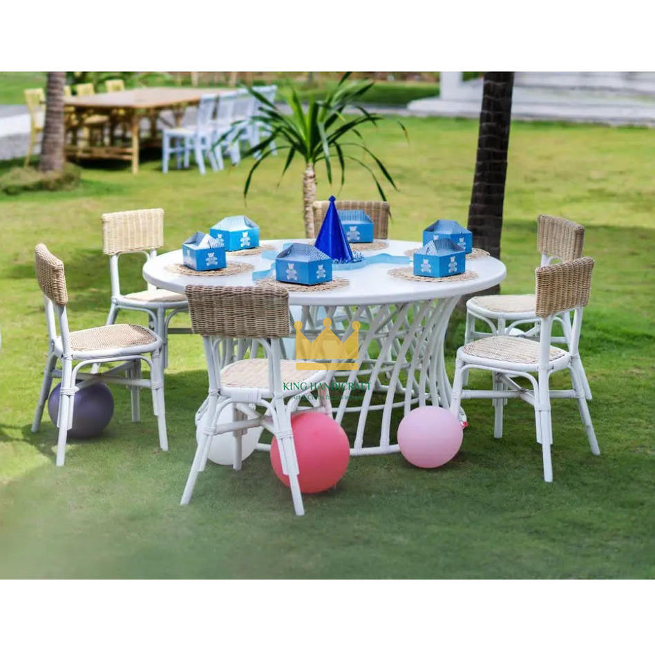 Ensemble table et chaises pour enfants en rotin durable, confortable et écologique-Design pour salles de jeux, chambres à coucher pour enfants