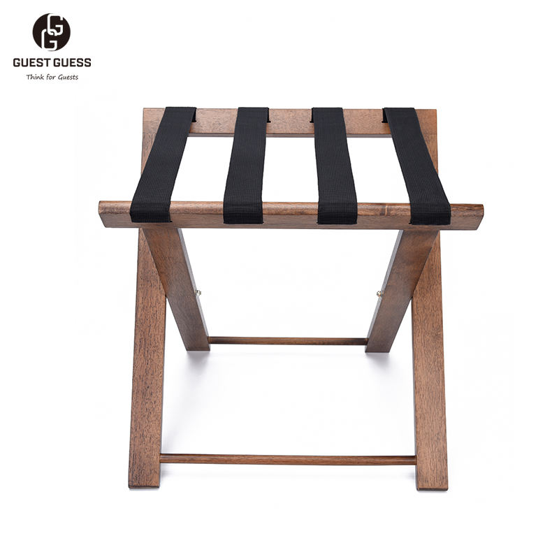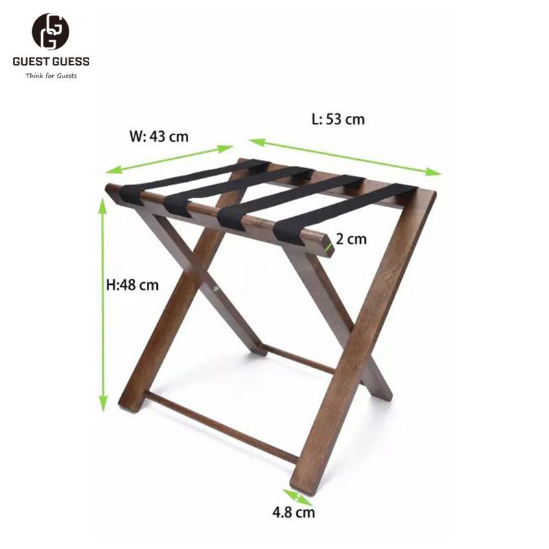 Porte-bagages pliable compact en bois durable, style moderne de luxe de qualité hôtelière, finition noyer, étagère multifonctionnelle