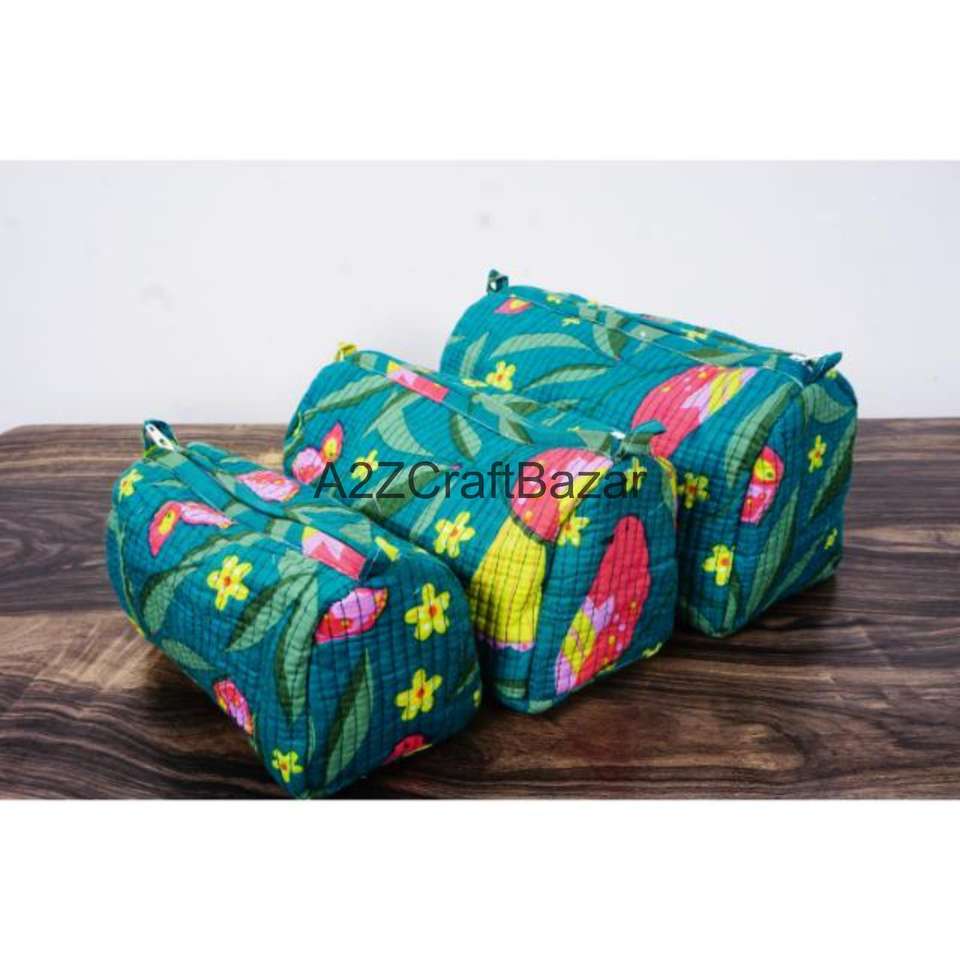 Ensemble de trousses de voyage légères en coton durable à motif pompon avec fermeture éclair, écologiques et réutilisables, 3 tailles moyennes pour le rangement de maquillage
