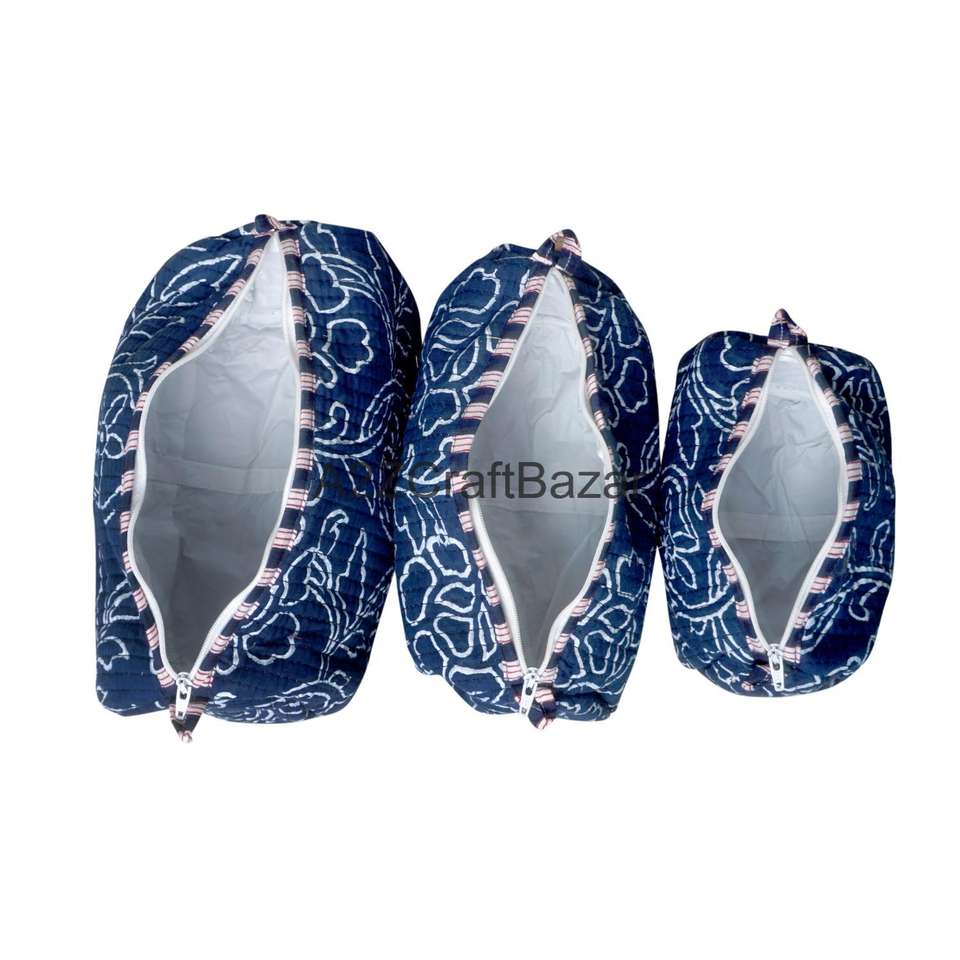 Ensemble de trousses de voyage durables en coton à motif pompon avec fermeture éclair - Écologiques, réutilisables, petite taille, pour rangement de maquillage